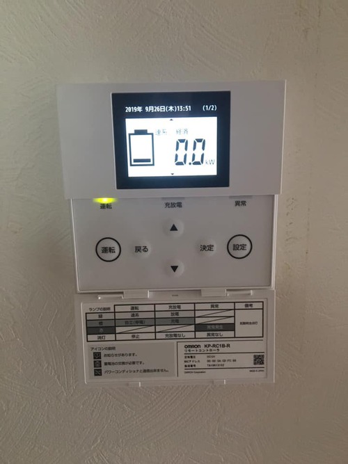 | 備考欄 | G様はパナソニックの太陽光を設置していて、発電も驚く程に順調な方でした。 太陽光だけでは暗い時間は電気は使えません。蓄電池があれば暗い時間にも電気を使う事が出来ますし 暗い時間に電気が使えるのは大きな違いですよね! もちろん費用の問題もあるかとは思いますが、まずは蓄電池がどおいう働きをするかご自宅にどの位の容量の蓄電池が必要か確認してみてはいかがでしょうか? 今回は蓄電池の設置を弊社にお任せ頂きありがとうございました。 |